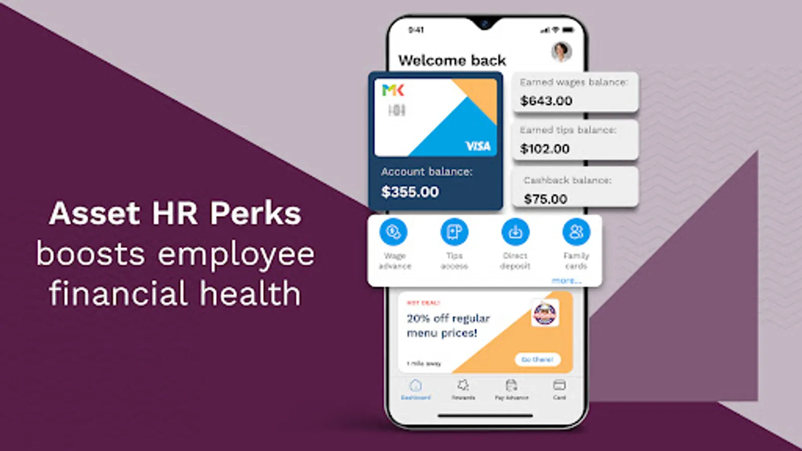 Asset HR Perks is an innovative and comprehensive solution oriented to recognize, retain, engage and reward what companies value the most: the financial well-being of their people. We are the one and only digital platform that integrates financial solutions and the most trusted promotions network in America. We provide access to daily wage access and our users obtain the best online deals, cash back and saving opportunities. In simple, easy steps with an amazing user experience our service is at no cost for you or your employee.
