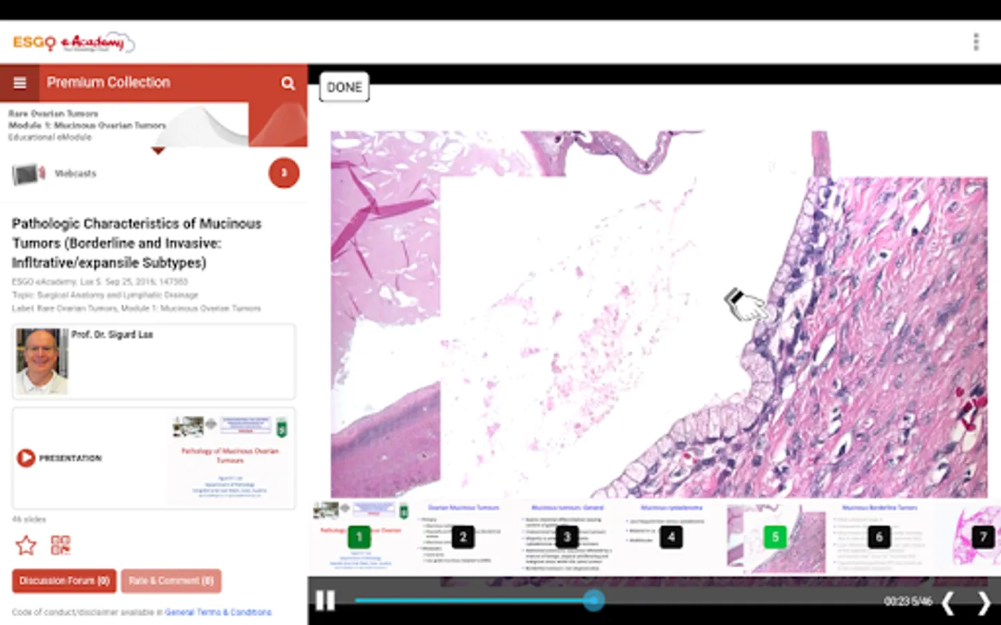 Premium access is free for ESGO members, others may purchase a digital premium access through the app.