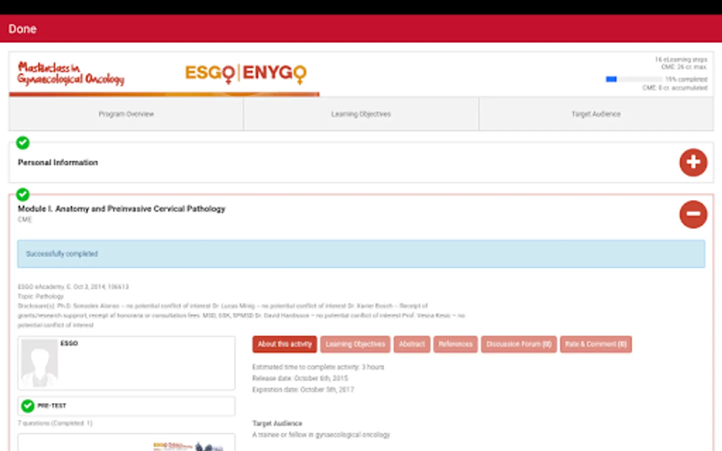 Should you require technical support, please contact the ESGO eAcademy App support team at support@eacademy.esgo.org