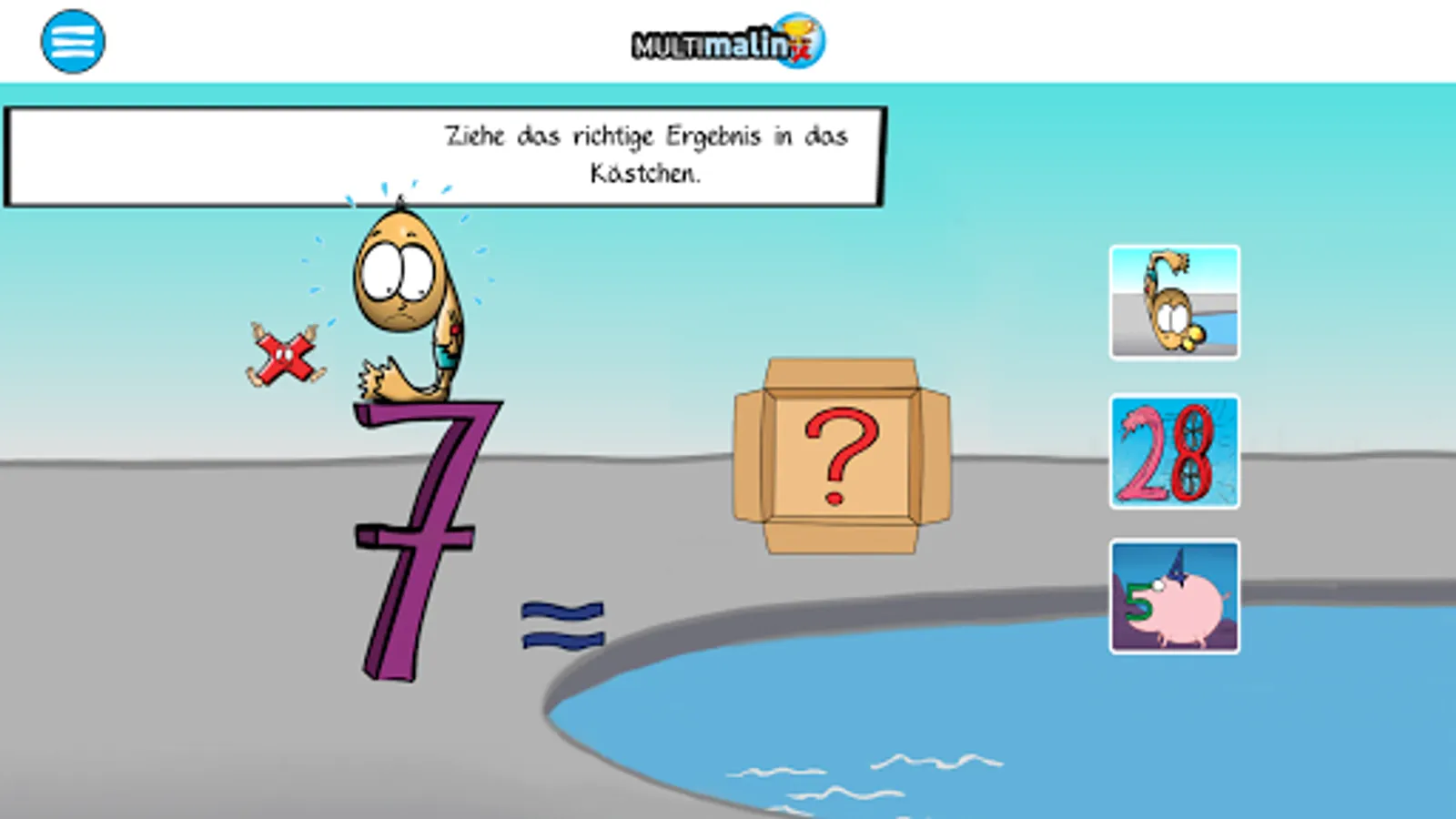 Each multiplication is turned into a short cartoon. In it, the different numbers tell funny and exciting stories that your protégé will remember for a lifetime. Each multiplication and its result is assigned a specific image that your child can automatically call up after a short time as soon as an invoice is requested. In just two weeks (with 2 or 3 new multiplications per day) those who don't like math can become top of the class.