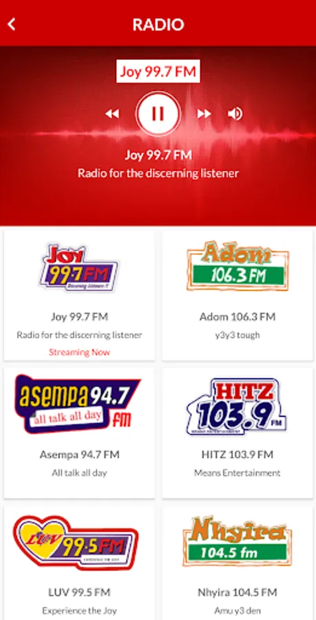 Live Channels : Watch TV streaming on JoyNews or Listen to all LIVE radio streaming (JoyFM, LuvFM, AdomFM, HitzFM, AsempaFM, NyiraFM)