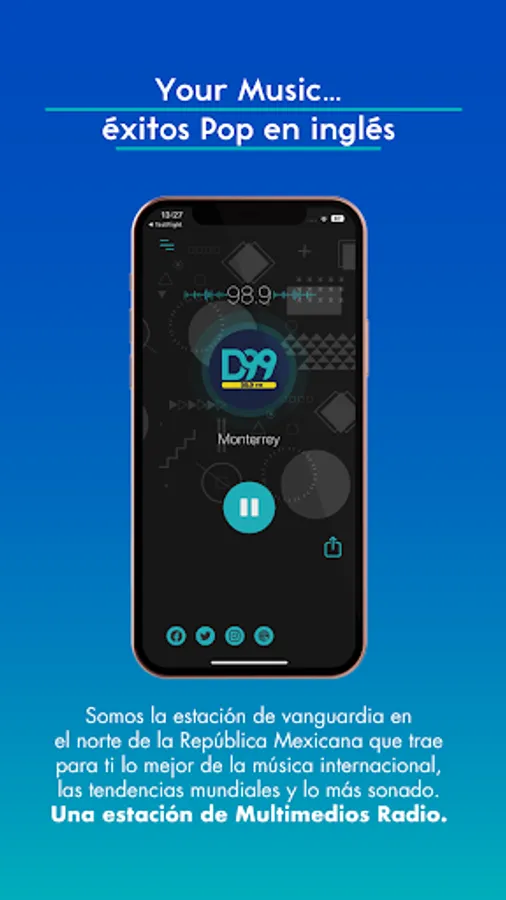 We are the avant-garde station in the north of the Mexican Republic that brings you the best of international music, world trends and the most famous of rock, pop, dance, R&B and Hip-Hop. Only proven hits. Broadcasting from Monterrey, Mexico to the entire world. D99 - 98.9 FM. A Multimedia Radio station.
