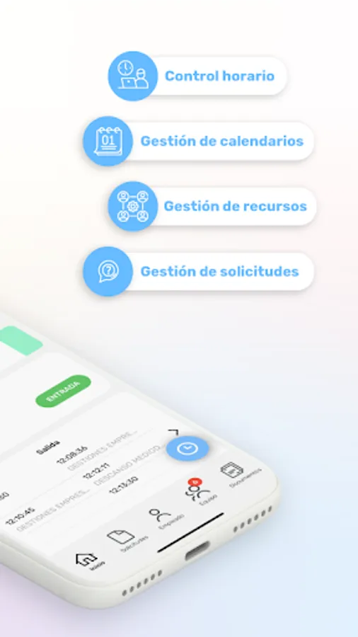 This solution offers employees and managers the possibility of managing all kinds of incidents and absences (trips, breaks, medical visits, etc.) from the APP, in addition to including the receipt of notifications and push notifications, consultation and change request of work schedules, creation and management of requests, delays alerts, among many other functionalities.