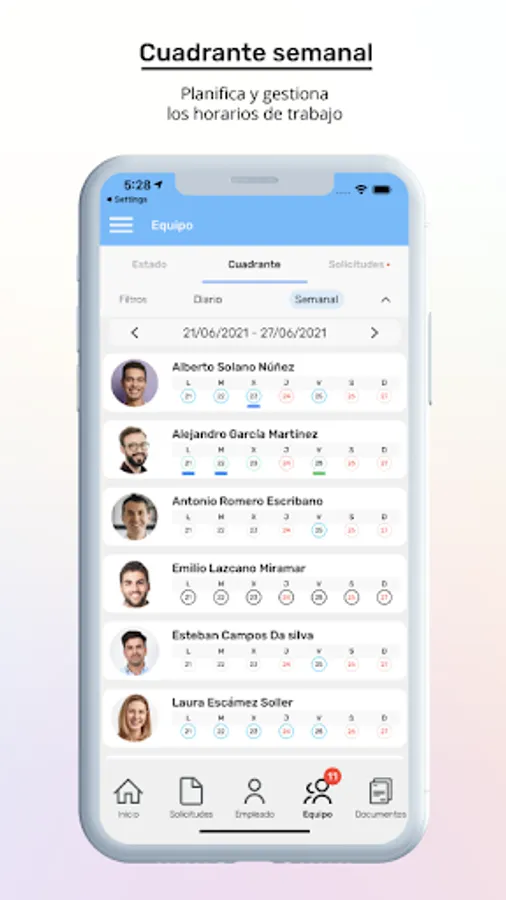 Nubhora is an expert time management system that offers employees and managers the possibility of managing everything related to their workday through a modern, agile and intuitive APP.