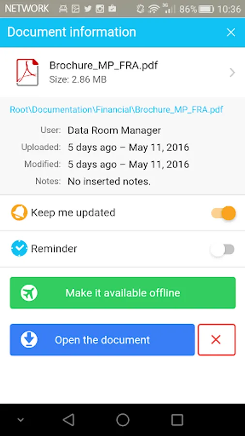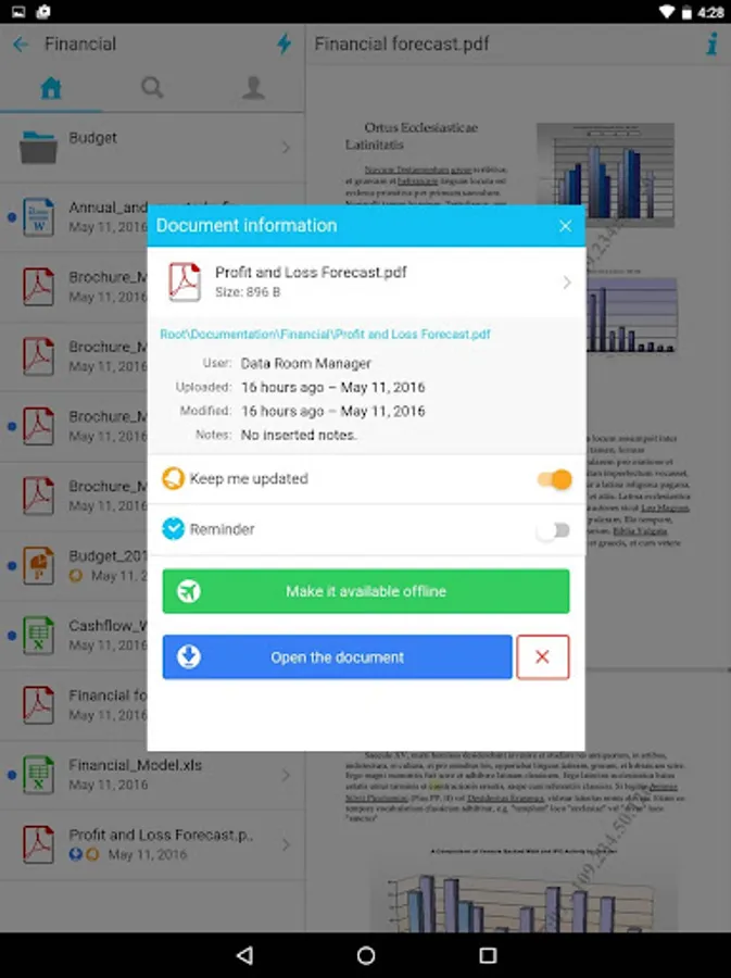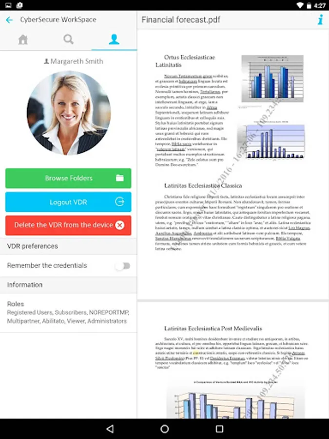 With the same access credentials verified via the web version of the VDR and the role assigned to you, you can access the documents, automatically synchronized 24/7/365, wherever you are.