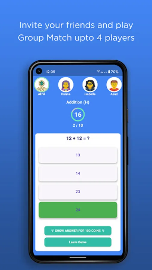 We start from the base. At each level, we take you to more complicated problems and gradually you develop the skill of speedy response and improved mind calculations. Mathmax has multiplayer, group playing options to challenge your friends, relatives, or colleagues.