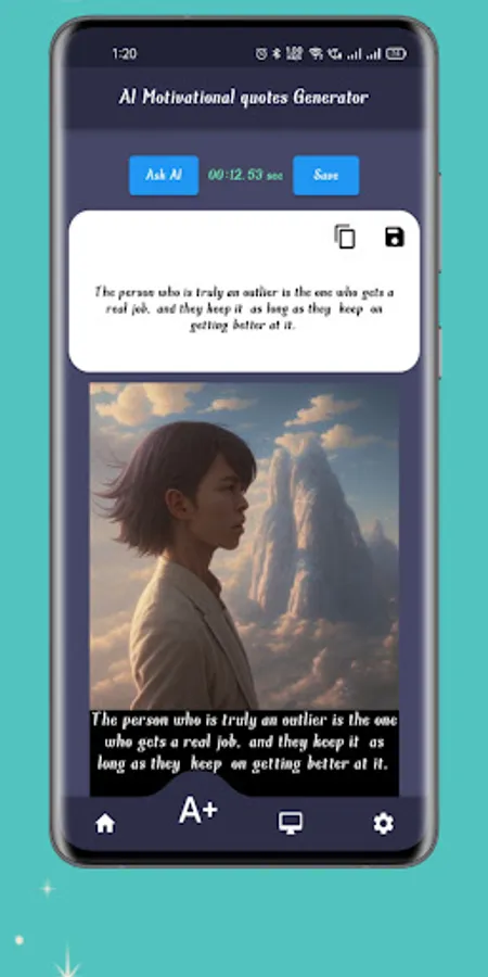 Use daily quotes for inspiration to live your best life and make progress towards your personal goals. The AI Motivation Quotes,Images app can even be used as a quote maker, allowing you to share your favorite positive quotes on social media.