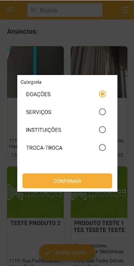 Hello! Welcome to Donare, we are a digital application for smartphones, an innovative platform for social causes, we provide various donations, voluntary services, advertisements, help for NGOs, churches and exchange of goods. We thought of something that could unite society in all corners of the world, meeting all its demands, using technology.