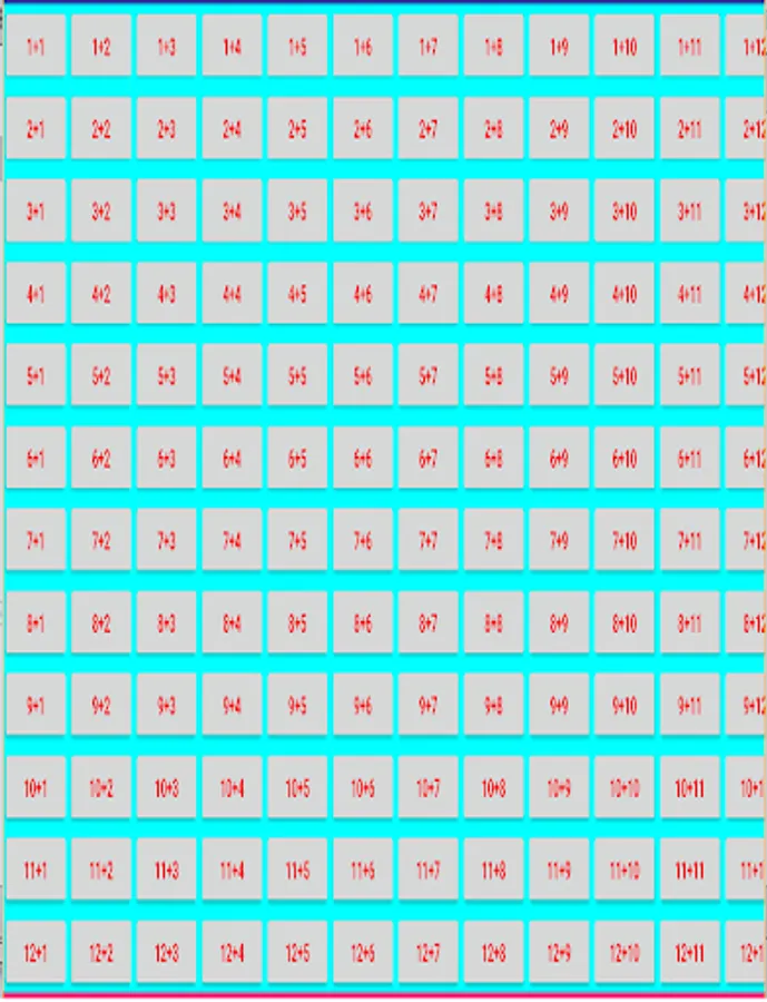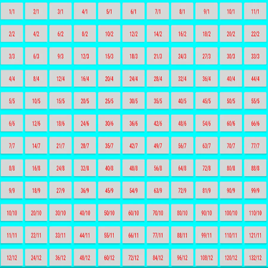 When the user clicks the button such as "11X11", the user hears eleven times eleven is equal to one hundred twenty one.