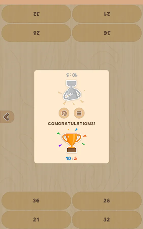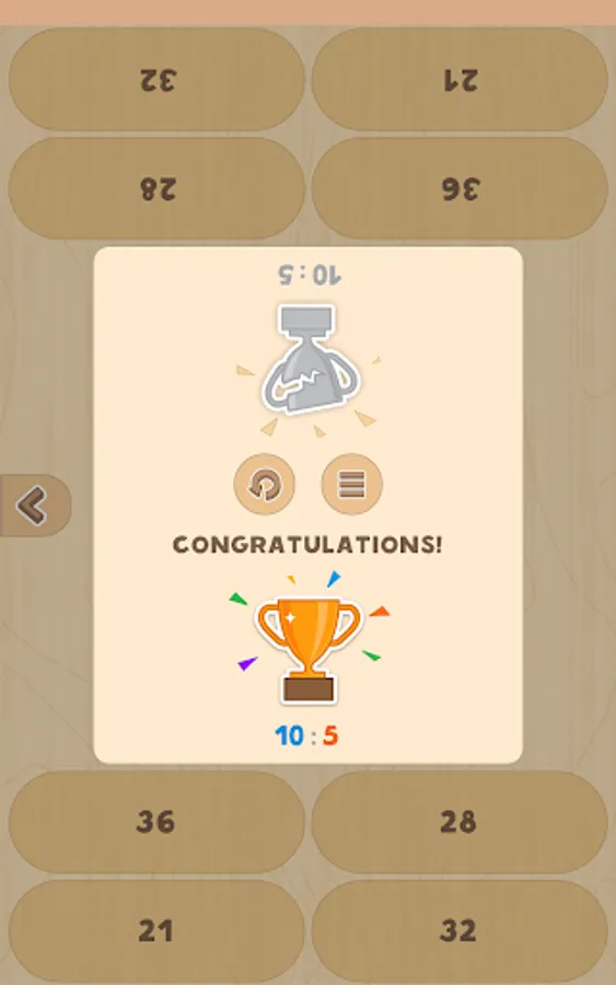 The app also has "Competition mode" where two players compete with each other scoring points for correct answers. It is a good way to practice your math skills playing with a friend or your child.