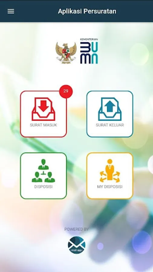 Is an Internal Application in the Environment of the Ministry of SOEs to support the Productivity of Employees in Managing Online Service Manuscripts which includes Management of Incoming Letters, Exit Letters, and Letter Dispositions
