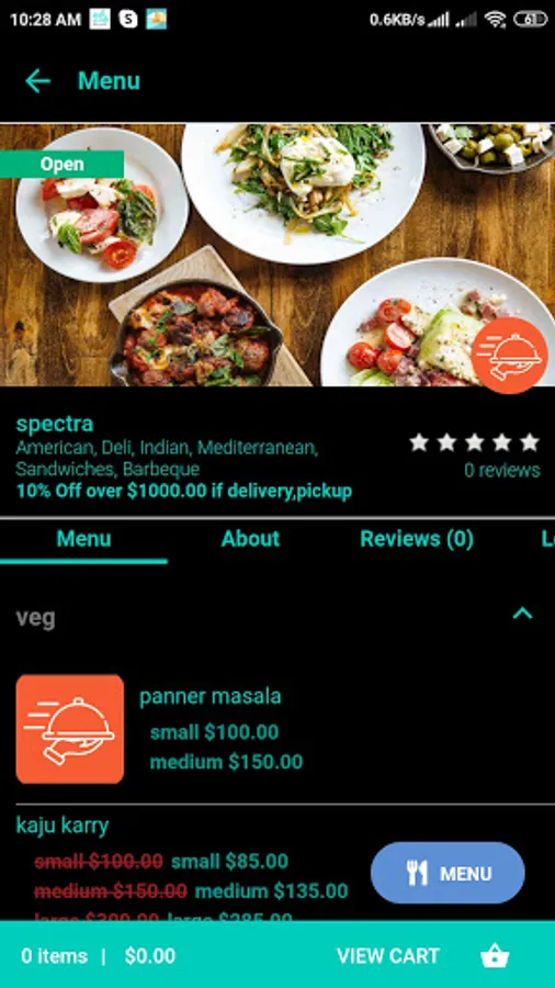 (2) After you have selected your store you can view their menu and details. select the category you like and add to your cart