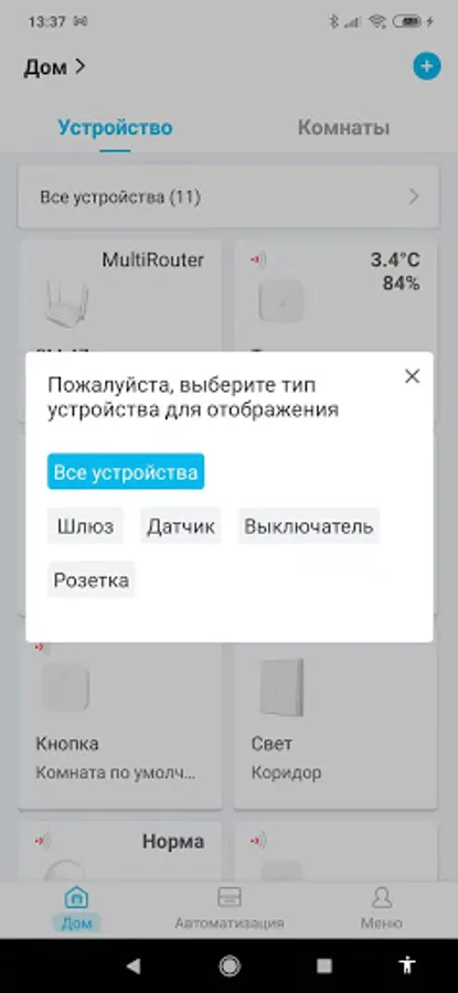 Connect various Zigbee devices to MultiRouter and use this application to view their status, control, create all kinds of automation.