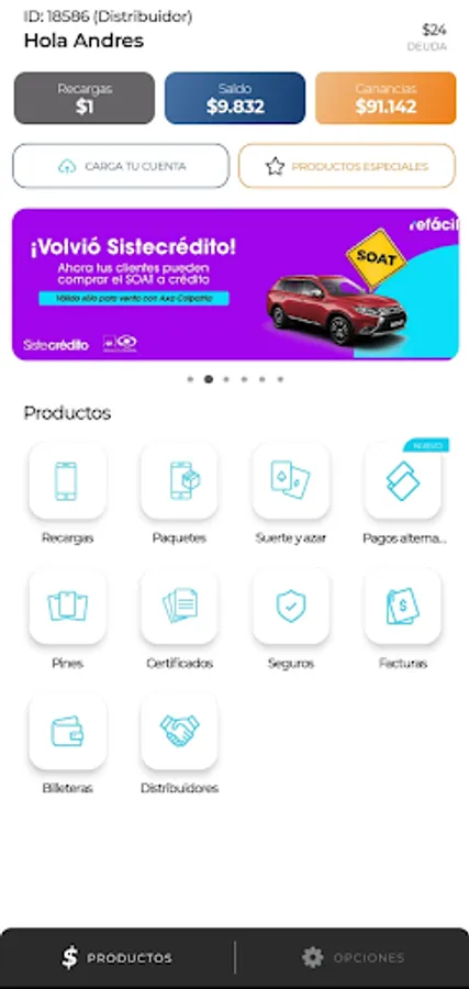 Transactional platform specialized in products and services such as top-ups, bill payment pins, insurance, among others.