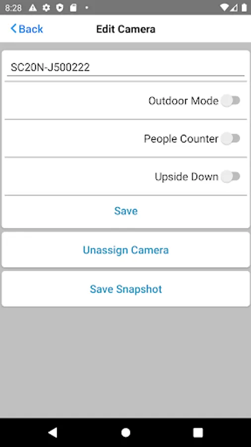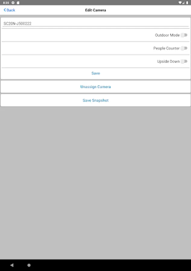 * Capture snapshots, allowing customers and support staff to confirm that cameras are placed correctly.