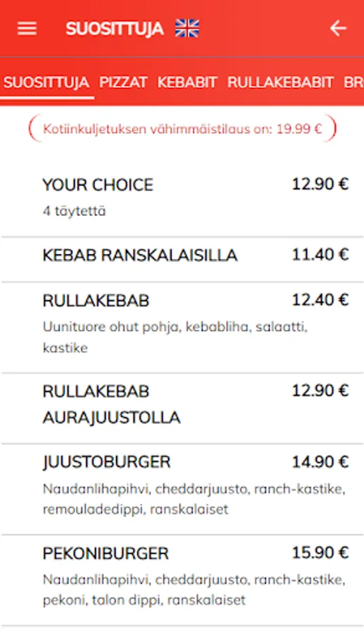 Valittuasi halutun ruoka-annoksen, lisäät sen ostoskoriin – tai valitset esim. lisätäytteitä. Voit tehdä vielä