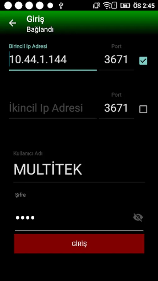 - Secondary (Secondary) IP: Routed IP should be written. Port settings are still on the tablet → → telephone connection port should be the same as the value of you have written to. (Valid for connections to be made over Wi-Fi or mobile networks.)