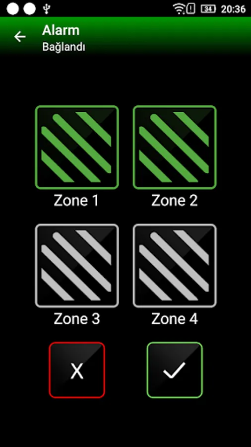 - Alarm Information: active zones from which the tablet / shows that rendered passive.