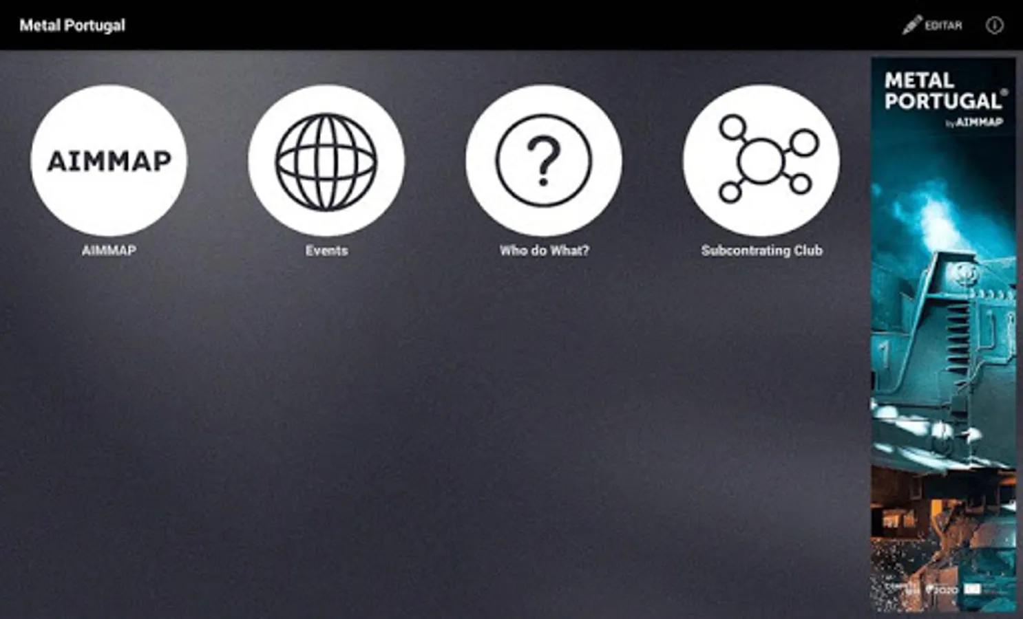 The Metal Portugal App is an aggregated platform que contains institutional information about the Portuguese Metal and Engineering Sector and marketing tools Also for the international promotion of the companies in the events organized by AIMMAP.