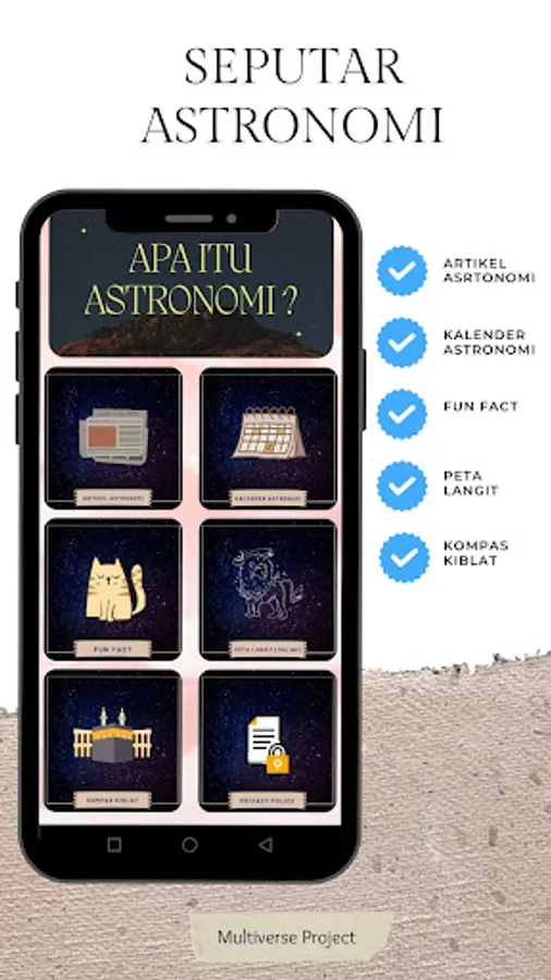 About Astronomy is an application that is suitable for those who love astronomy, this application contains astro events, astro articles, sky maps, astro scientists and Qibla compass