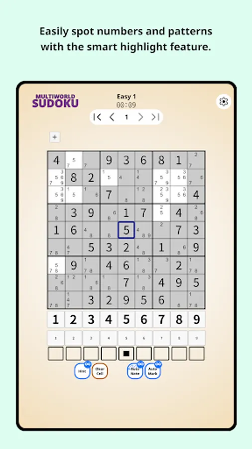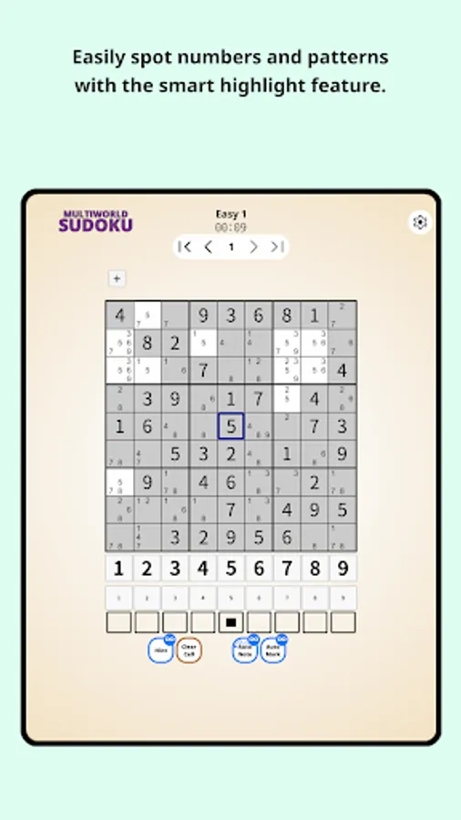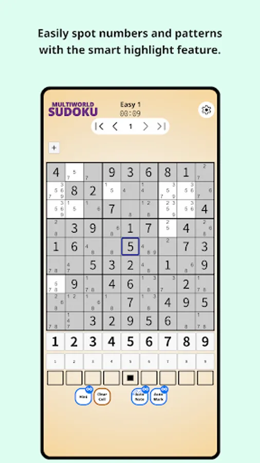• Selected Number & Note Highlighting: Helps you easily apply various Sudoku strategies!