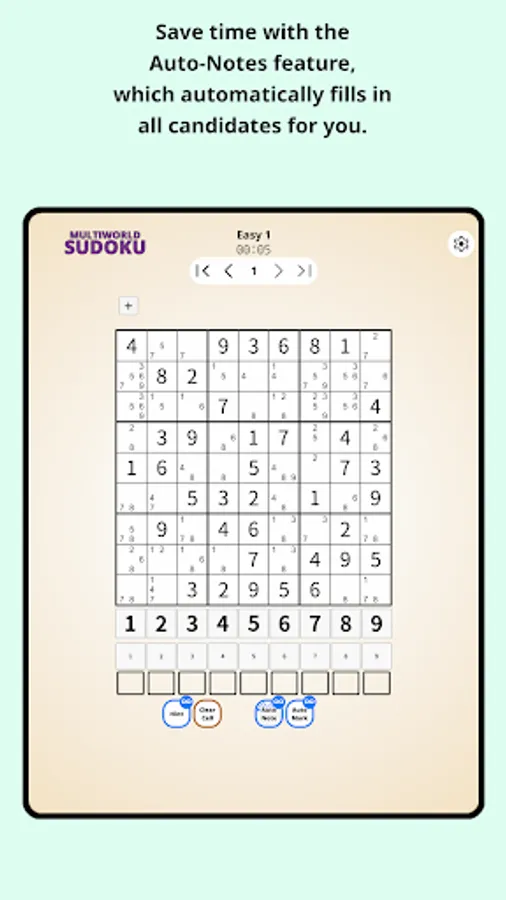 • Auto-Mark: Notes with only 1 number left are instantly converted to the answer!