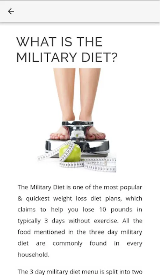 Super Military Diet Plan is a simple app that helps in weight loss using low calorie military diet plan. Burn belly fat, slim down and get fit with this 3-day military diet plan, proven to help weight loss. The diet is a very popular regimen, and has worked for many.