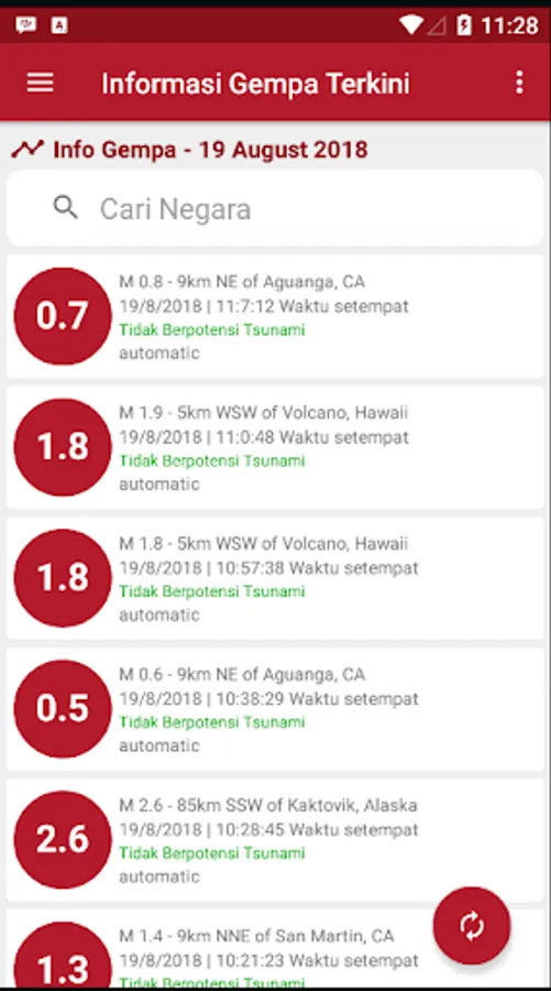 QuakeNow gives you information about the latest earthquake, updated from around the world, data based on earthquake.usgs.gov