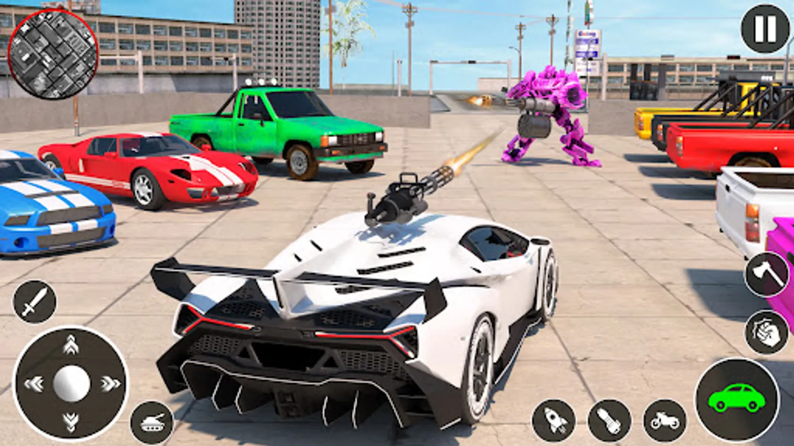 Transforming war with the car robot car game fight epic battle with multi robots transformations in the vice town gangster city with the robot enemies in this robot game. Choose your car transform battle for the robot war and enjoy the multi robot transformation challenges and missions in this game.