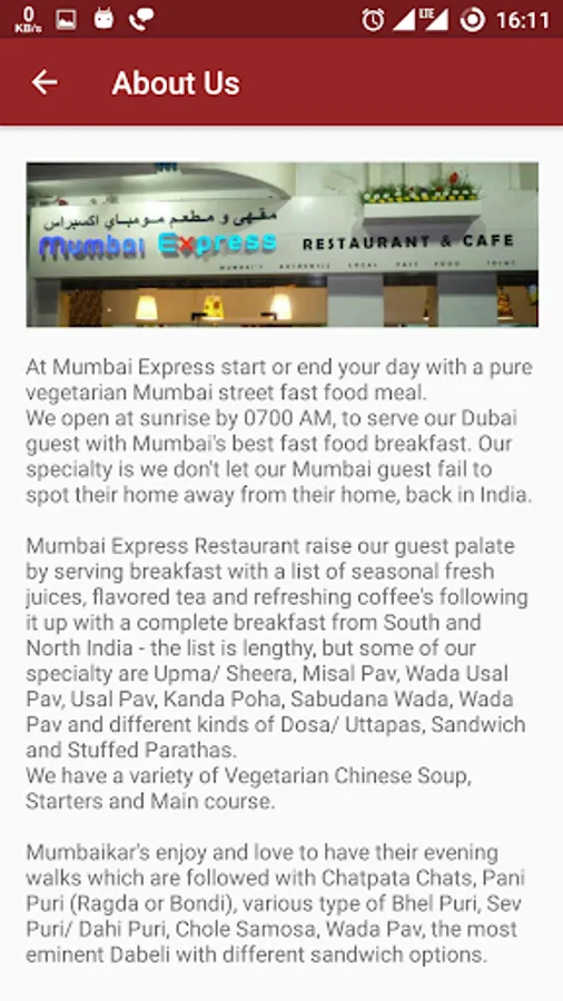 We open at sunrise by 0700 AM, to serve our Dubai guest with Mumbai's best fast food breakfast. Our specialty is we don't let our Mumbai guest fail to spot their home away from their home, back in India