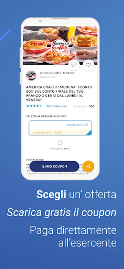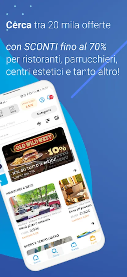 Discover thousands of offers of services and products in your city, to download for free with discounts or cashback up to 70%: restaurants, cinemas, hairdressers, spas, beauticians, mechanics and many more ..