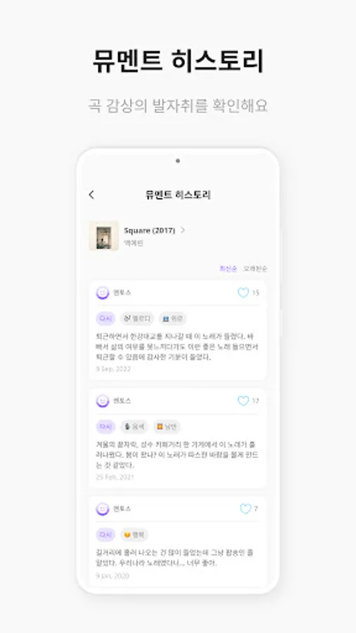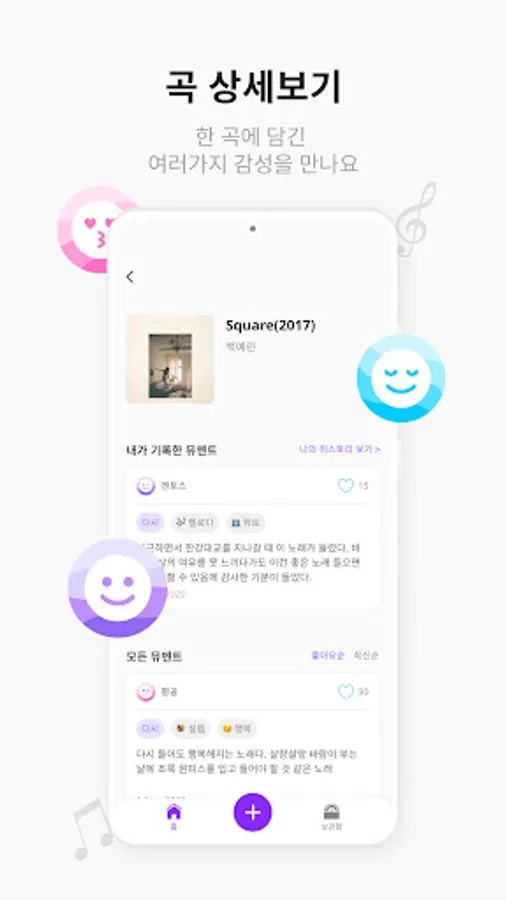 - View song details: Expand your appreciation by meeting various emotions in one song.