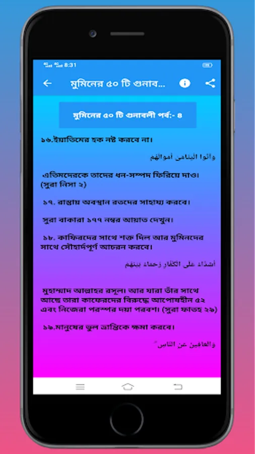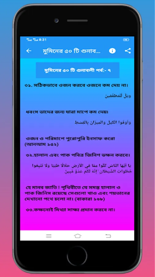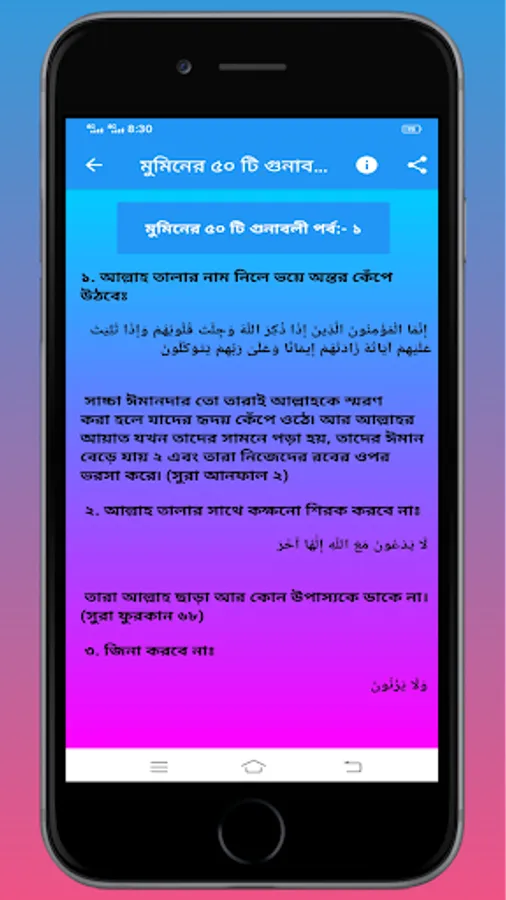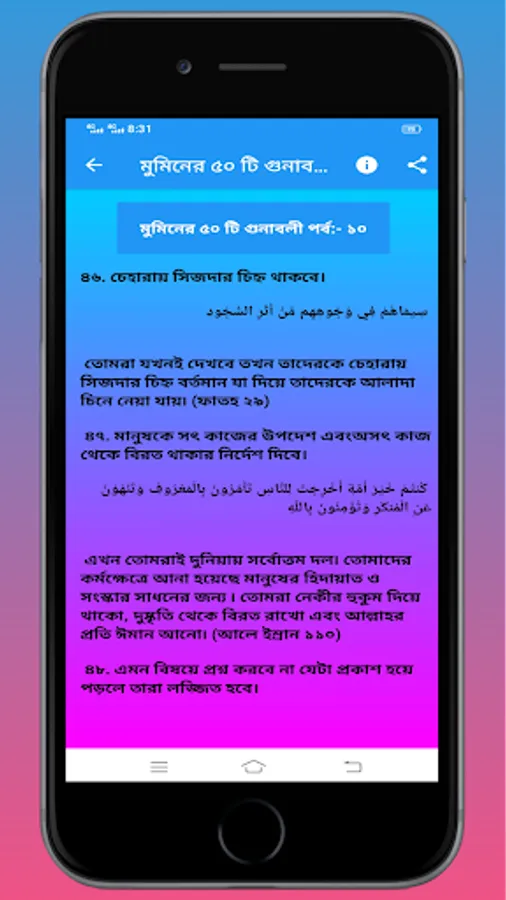 এই অ্যাপটিতে মুমিনদের ৫০ টি গুনাবলী সম্পর্কে আলোচনা করা হয়েছে।