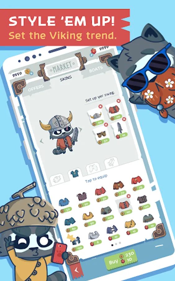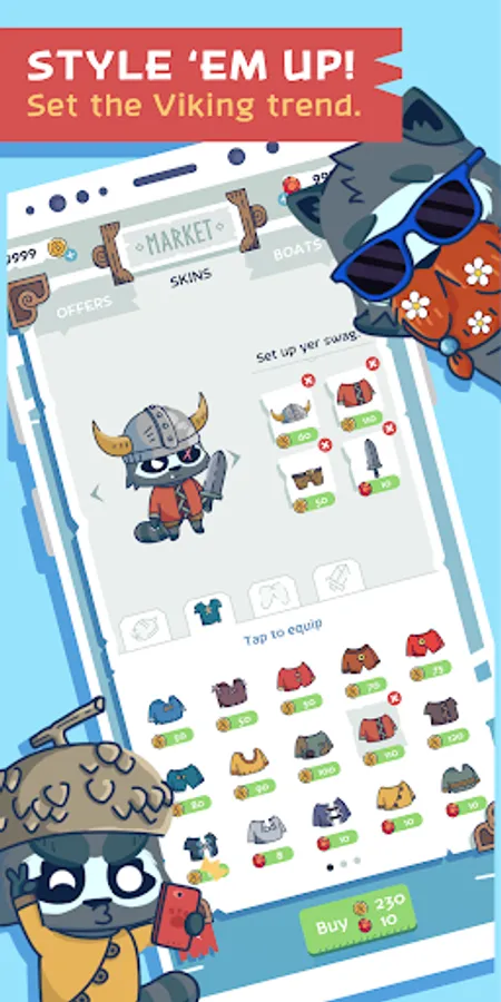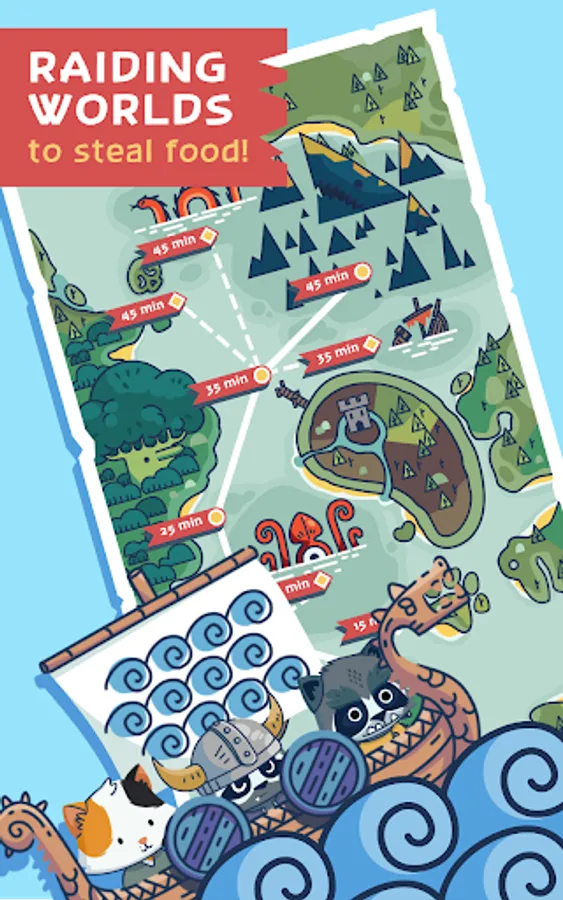 Grow your village population with what you find, ‘hire’ different raiders for different loot and discover new places for new raiders and treasures.
