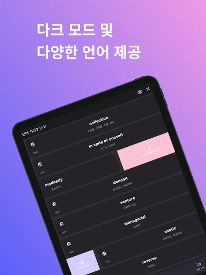 It provides various languages and a dark mode that allows you to study comfortably at night.