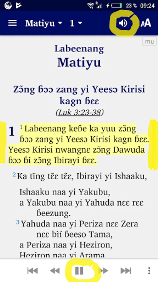 • Give your phone permission to download the audio files for the New Testament texts. Once downloaded, the audio files will remain on your device for further use in offline mode.