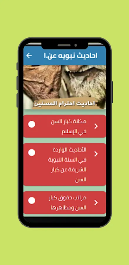 Our application talks about prophetic hadiths about respecting the elderly and its importance on Friday, religion and supplication for parents, as they brought me up.