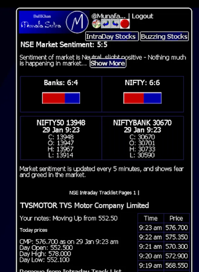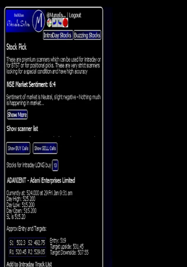 The app also includes premium section of Munafa Sutra (BullKhan premium service), and you can access the entire premium section from within the app itself!
