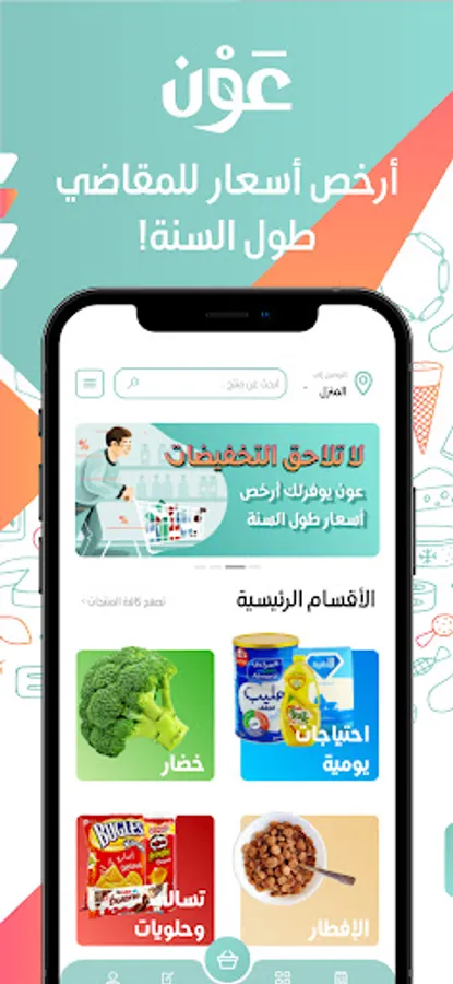 Aoun is an application for food purchases and daily needs, that provides you with ordering and delivery services for products and is characterized by offering the lowest prices for the offered products. Aoun estimates that you save about 35% to 50% of your monthly expenses on food products, and all this for a nominal monthly subscription fee that is deducted once a month 26 riyals including tax.