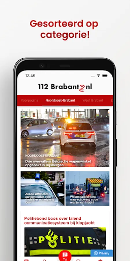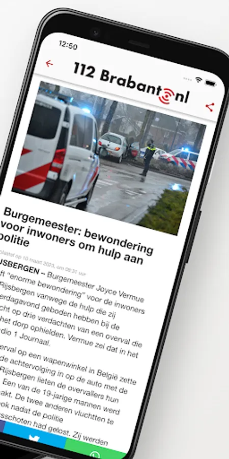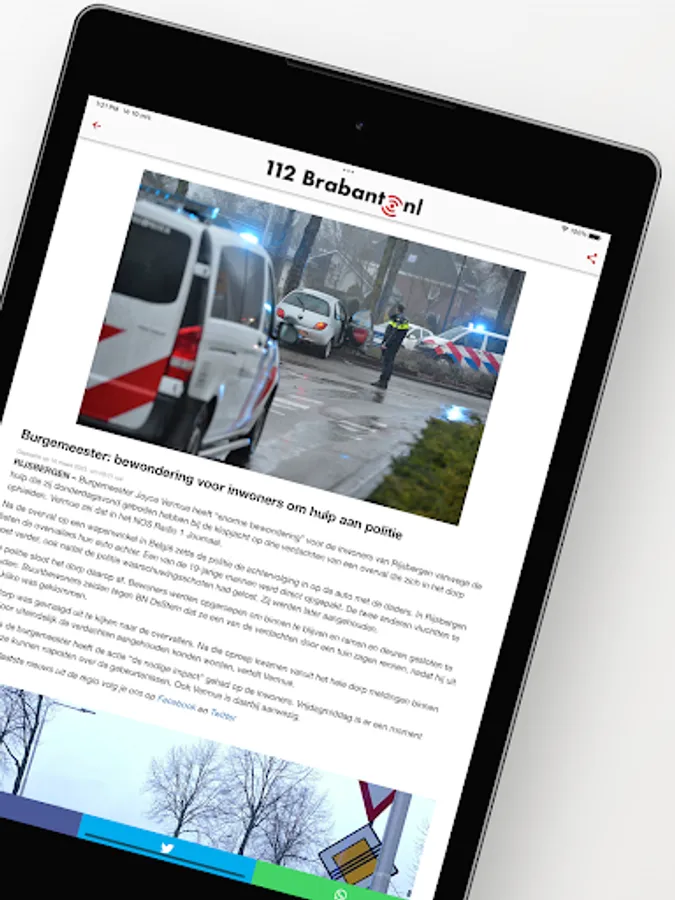 With the 112 Brabant app you are always aware of the latest news from the Netherlands. Including news about the deployment of the emergency services (ambulance, fire brigade and police). Easily read news items and view the photos and video(s).