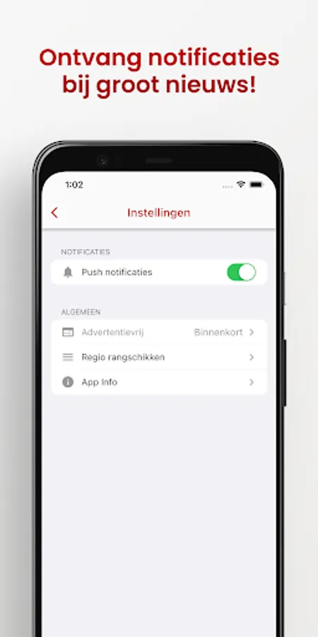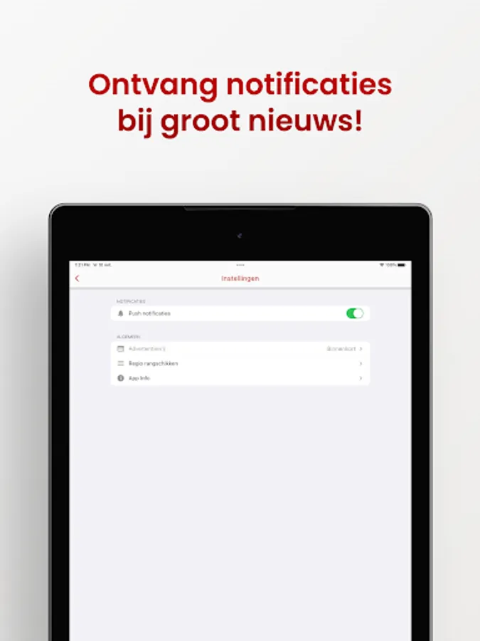 In the 'Settings' menu you can indicate whether you want to receive a push message. In the event of important events, we will send a push message so that you are immediately informed of the event.