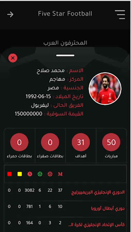 Five stars sports players apps is a statistic platform for football players around the world. This platform focus mainly on statistic content of the players as well as the latest news and their teams.