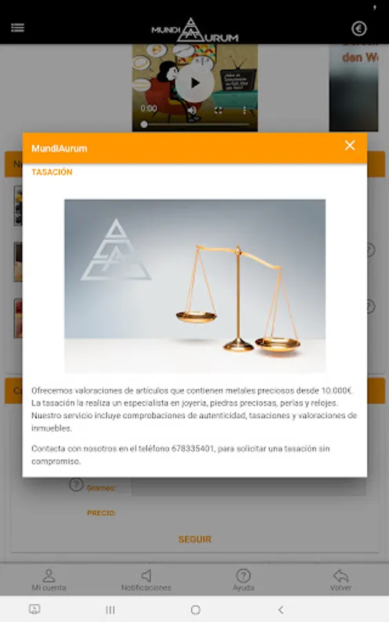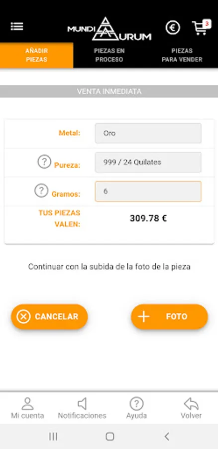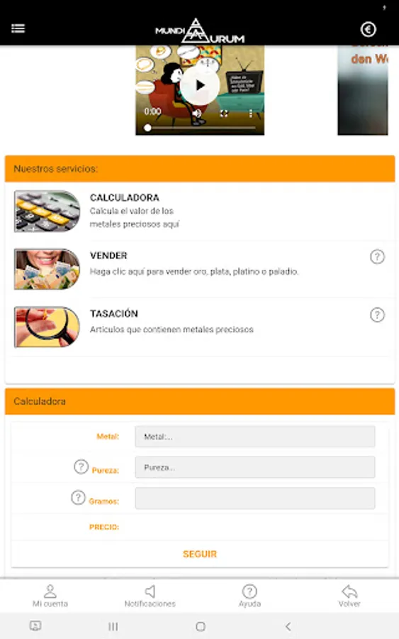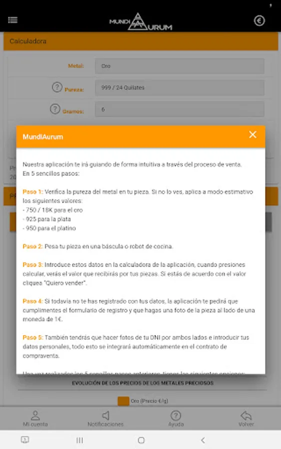 MundiAurumES is a free application that allows you to value and/or sell your precious metals.
