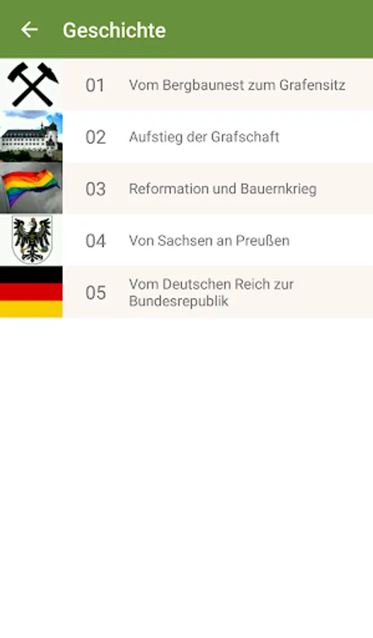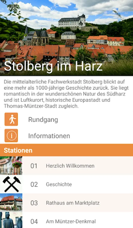 In a 60-minute walk mundoido goes back in time and takes you into the tumultuous era of the harsh Middle Ages, from the beginnings of the noble house of the counts and princes of Stolberg, on the turbulent time of the Reformation and the Peasants' War to modern times! Many Stolberg come in the audioguide live their say and give authentic insights into the daily life of the past half-timbered town!