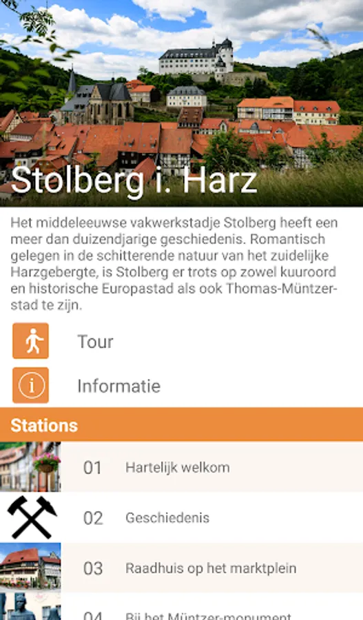 In a 60-minute tour takes mundoido you on a journey through time, from the stormy period of the wild Middle Ages, the origin of the noble family of the counts and princes of Stolberg through the turbulent times of the Reformation and the Boer War until modern times! Many residents of Stolberg come live in the audio guide to the floor and give an authentic insight into the daily life of the historic medieval town!