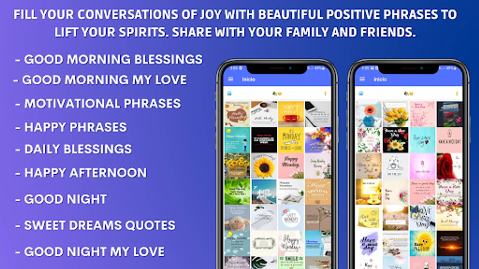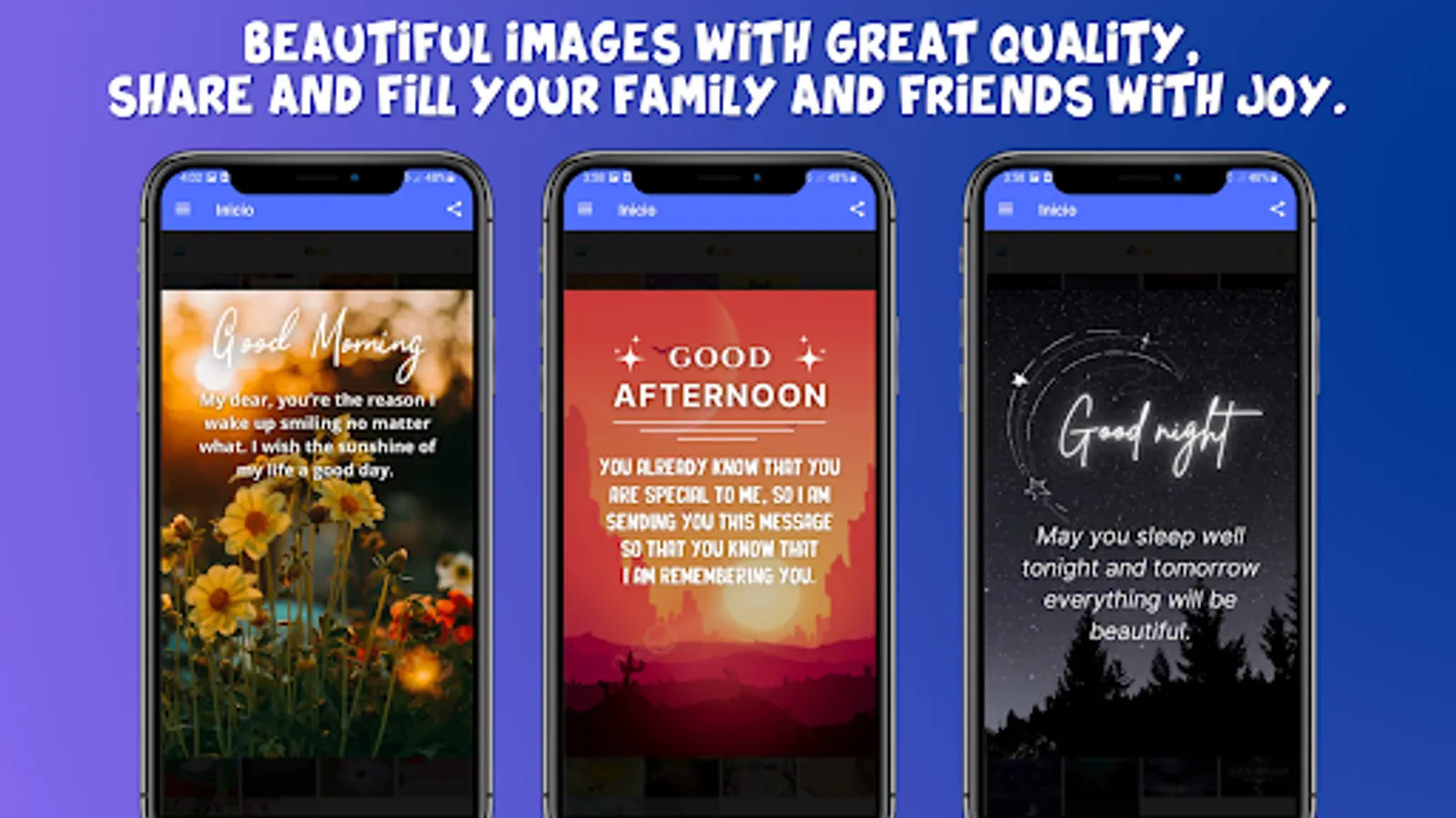 This application contains a gallery of selected images that will undoubtedly be liked by everyone. "Good morning greetings, afternoon and evening" offers you a varied collection of phrases with beautiful good afternoon cards or postcards.