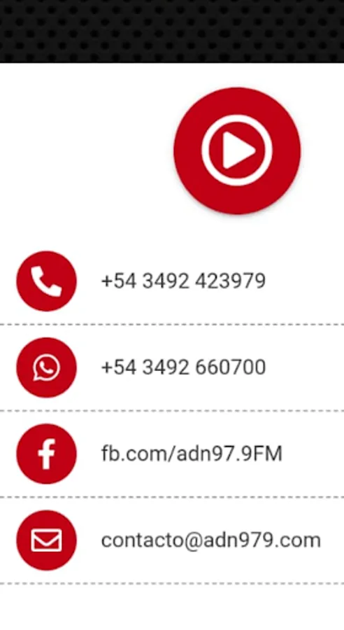 This app lets you tune in live radio signal 97.9 mHz Rafaela DNA, as well as access their links contact via email, sms, facebook, twitter and WhatsApp.