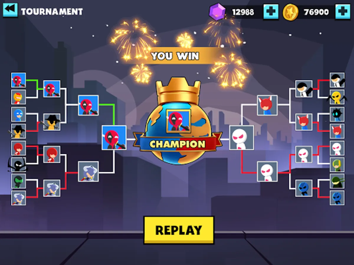 - Many stickman fighter characters with unique design style and special skill of each