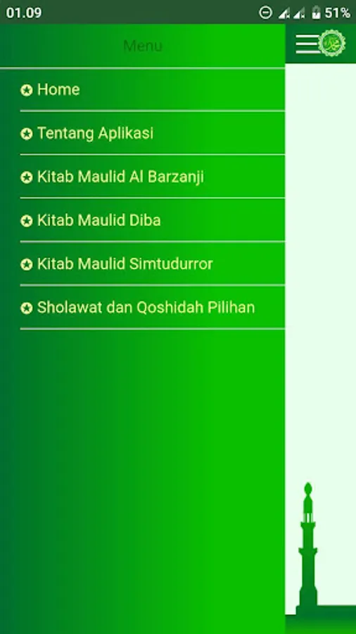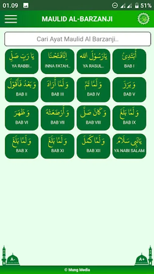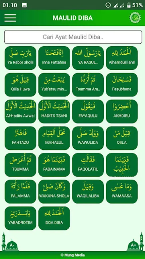 Application that contains the Book of Maulid Diba, Maulid Al Barzaji, Maulid Simtudurror, Qoshidah Burdah. Shown with Arabic texts that are easy to read, both Arabic and Latin texts and their translations. Reading maulids that contain readings of prayers, prayers, and the history of the life of His Majesty the Great Prophet Muhammad.