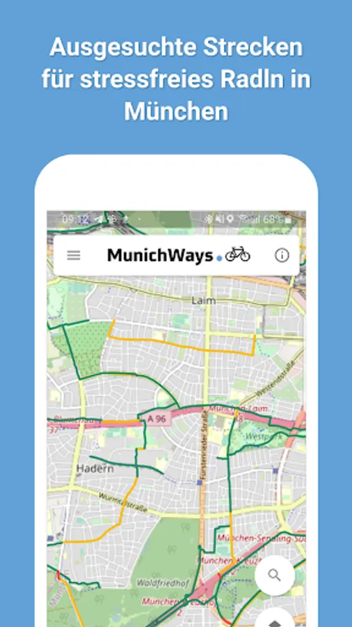 With the MunichWays App you can find the bike route in Munich that suits you, depending on the time of day, the weather and your mood. Our bike app shows you the possibilities. If you don't know your way around Munich at all, we also recommend navigating while driving with professional apps such as those from Bike Citizens.